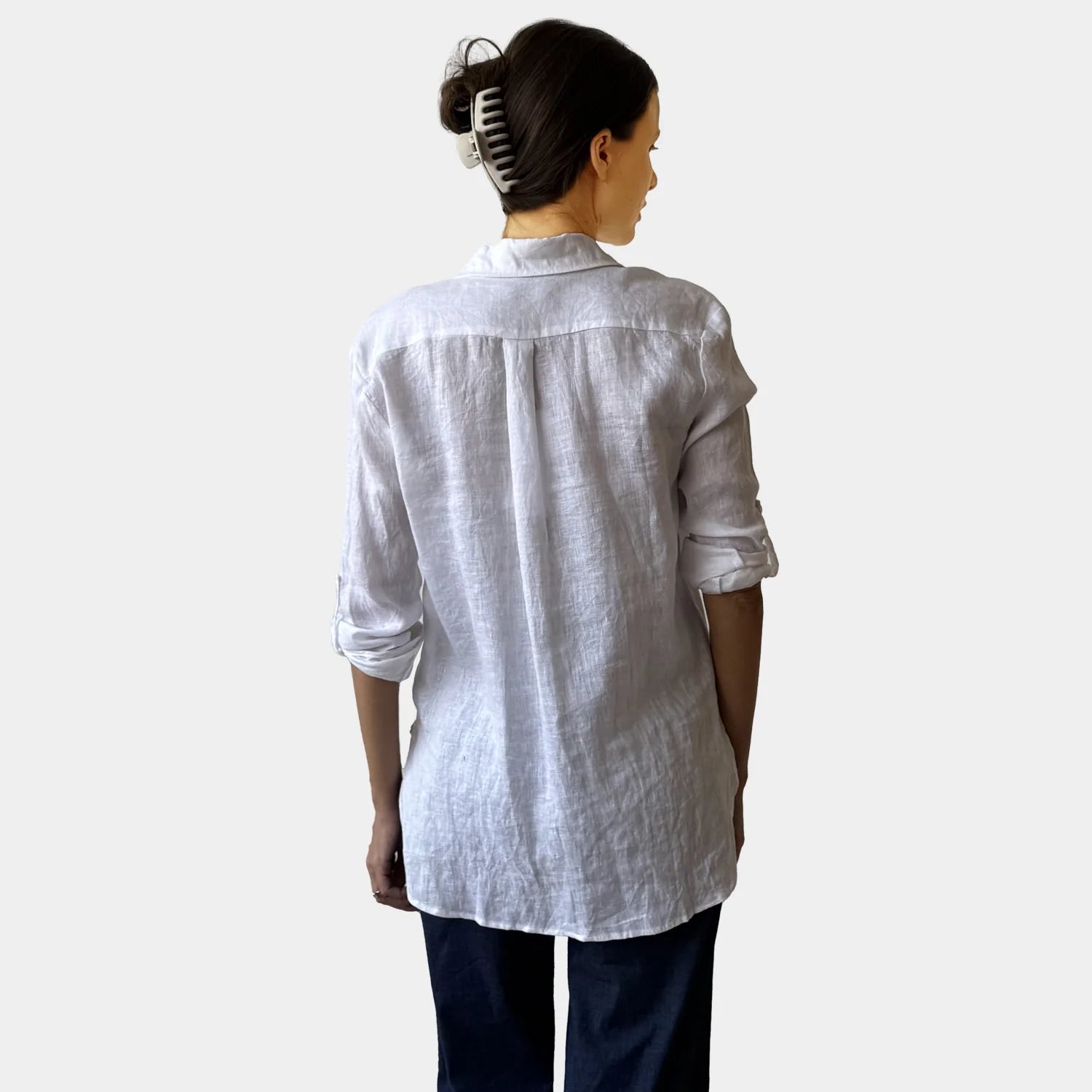 Crafted from 100% high-quality linen, the VIMMI WHITE LINEN SHIRT offers both style and comfort. The button-down design and high-low hem add a modern twist, while the elbow button allows for easy sleeve roll-up. Elevate your wardrobe with this amazing quality linen shirt.