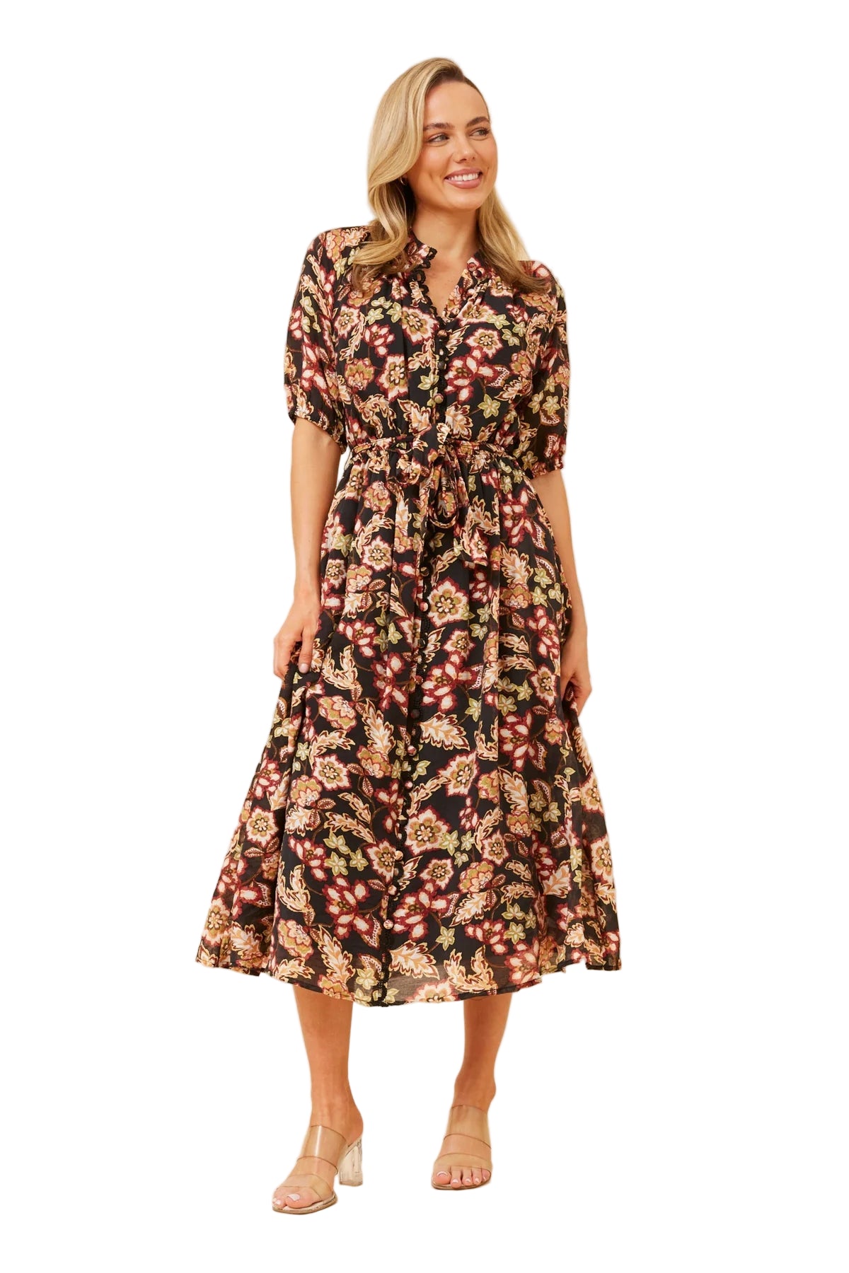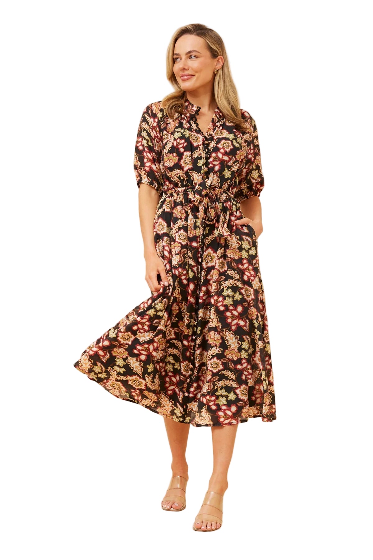The AMARIS is your go-to piece for effortless style that keeps up with life's demands. Designed with nursing-friendly buttoned front and embroidered buttonholes, it's as practical as it is chic. The relaxed fit pairs perfectly with the optional waist tie for a customizable silhouette, while short sleeves with elastic cuffs and midi length create a laid-back vibe that works everywhere. Belt loops and adjustable waist tie mean you can dress it up or down—comfort never looked so good.