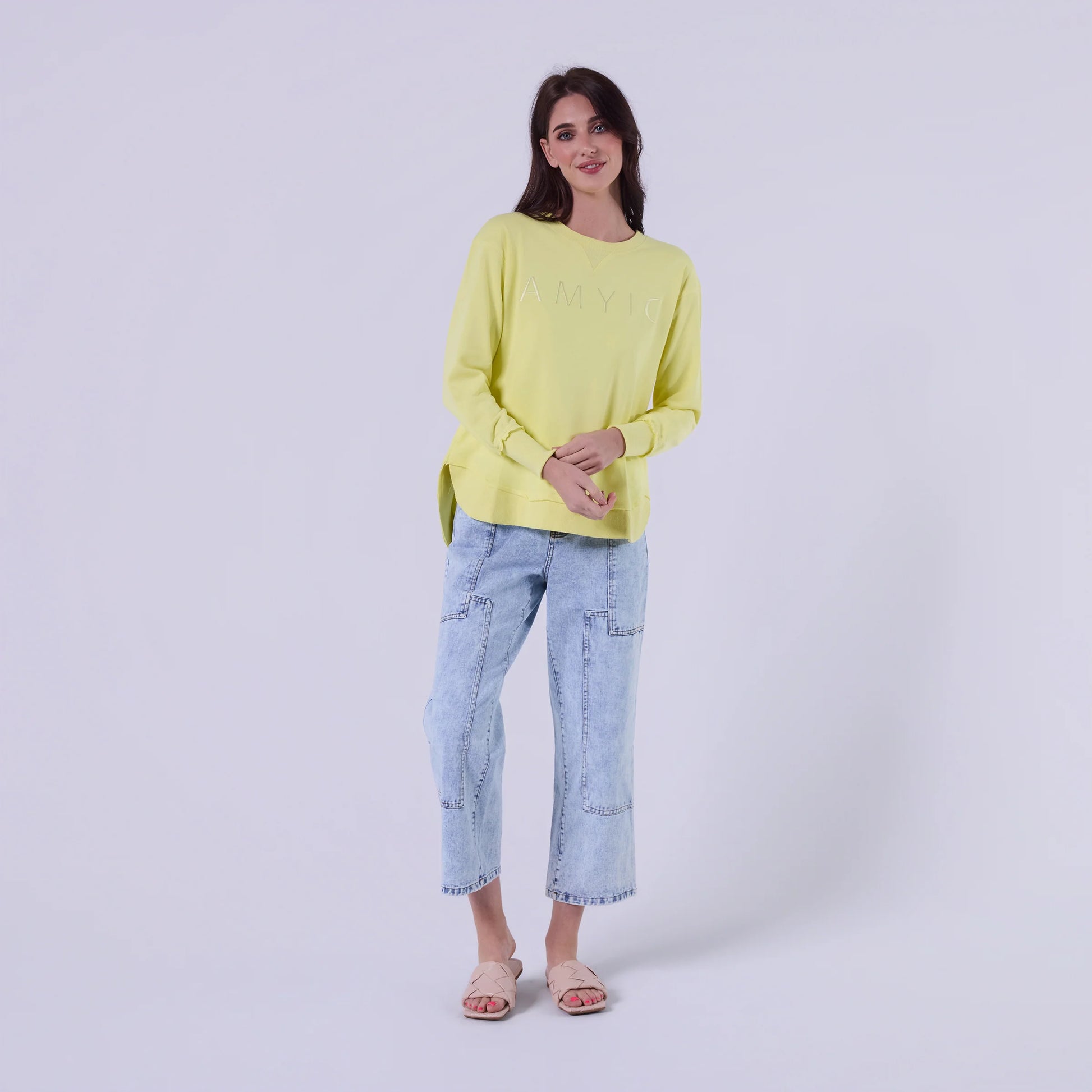 Stay cozy and turn heads in the AMYIC SWEATER. This 100% cotton knit delivers warmth and softness without the bulk, while practical front pockets add everyday functionality. The playful high-low split hem creates movement and visual interest, making it perfect for layering or wearing solo. Size down for a flattering fit and embrace the bold yellow hue that demands attention.