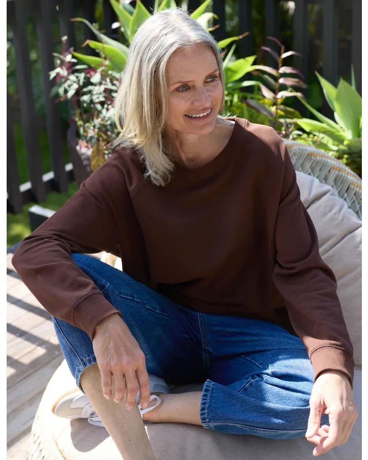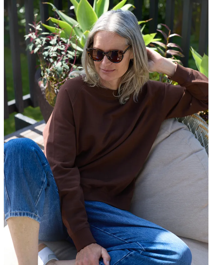 Relaxed fit sweater crafted with raglan seams for effortless movement and comfort. Features ribbed cuffs and hem that hold their shape, keeping you looking polished all day. The freehand design brings understated character to your everyday rotation. Perfect layered or worn solo.
