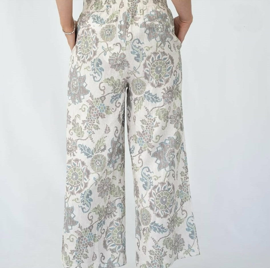 The DANNI combines understated elegance with everyday practicality. Crafted with a beautiful sage flower design that adds visual interest without overwhelming, these pants feature functional front pockets and elastic threading through the back for a comfortable, adaptive fit. Perfect for those who appreciate refined details and thoughtful construction in their denim wardrobe.