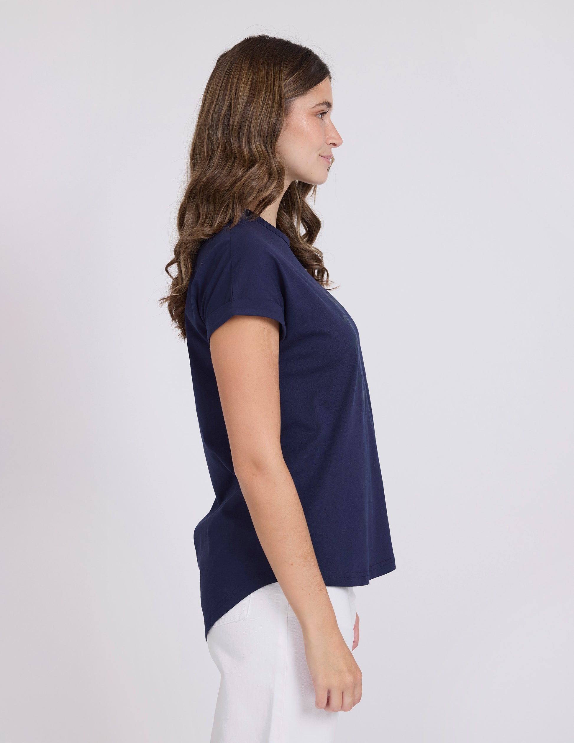 Meet your new go-to crew neck that's all about laid-back vibes. The SOHO CUFF rocks a relaxed fit that moves with you, while that longer scoop back hemline adds an unexpected twist—perfect for layering or showing off your style. Navy's the ultimate wardrobe hero, and this tee delivers comfort without the fuss. Effortless, versatile, and ready for whatever your day throws at you.