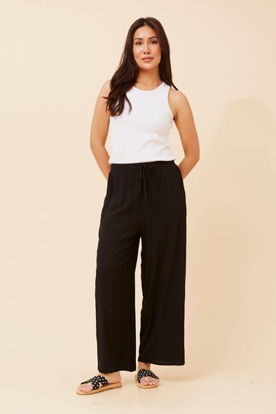 Step into effortless style with the Tilly Pant, designed for those who love comfort without compromising on flair. These wide-leg pants flow beautifully thanks to soft viscose fabric, offering a breezy feel all day long. The playful tie waist adds a fun, adjustable touch that lets you customize your fit while highlighting your silhouette. Perfect for casual outings or relaxed weekends, the Tilly Pant brings a fresh, easygoing vibe to your wardrobe. Embrace movement and charm in one stylish package!